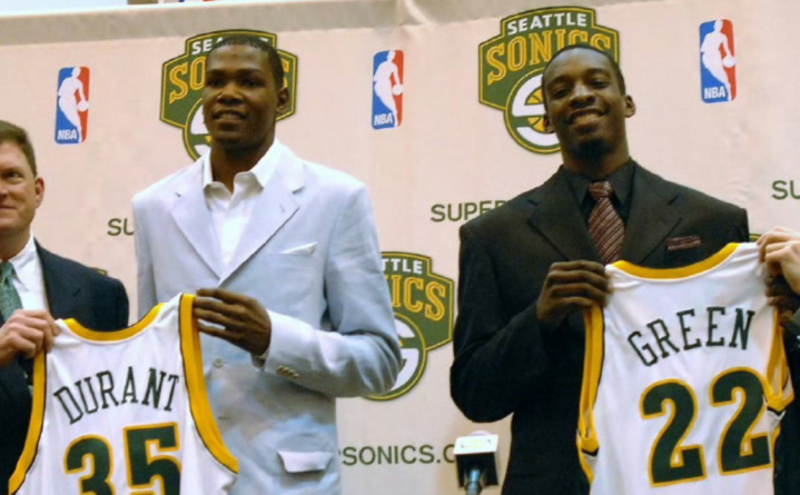 时光倒流到2007年,西雅图超音速队迎来了两位年轻人:凯文·杜兰特和杰夫·格林。