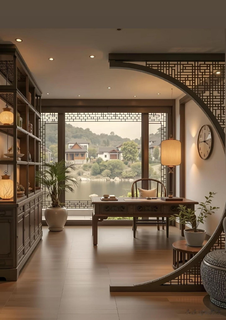 空间布局更是讲究“虚实相生”,既满足现代功能需求,又保留了传统书斋的静气与雅趣。